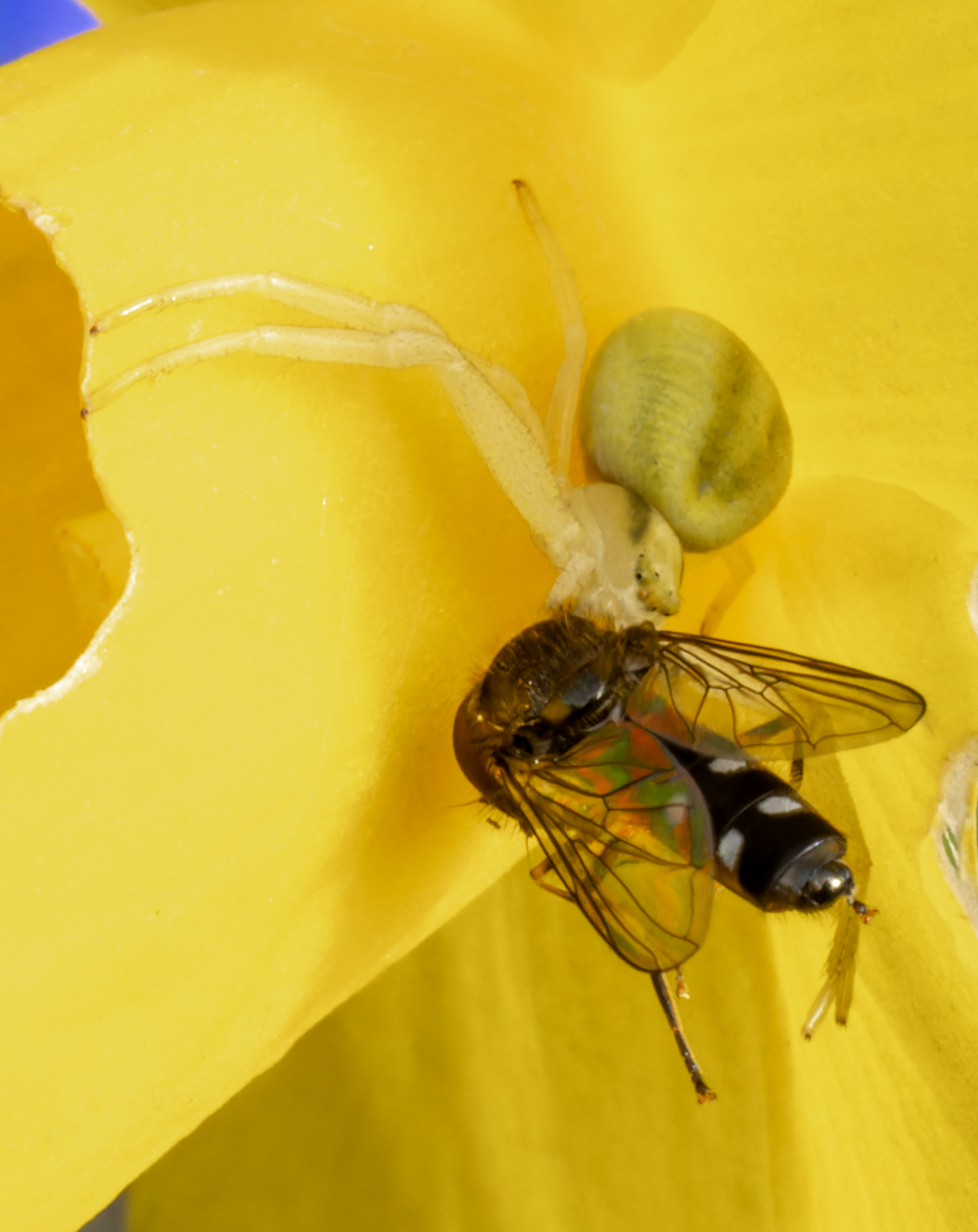 The wildlife is certainly waking up and spiders are particularly 'active' with some great photographic opportunities among the daffodils (Misumenia vatia, Diaea dorsata, Philodromus cespitum, Clubiona comta, Metallina spp etc. Lots of soil dwelling invertebrates disturbed while weeding and a final small caterpillar probably one of the Wainscot moths.